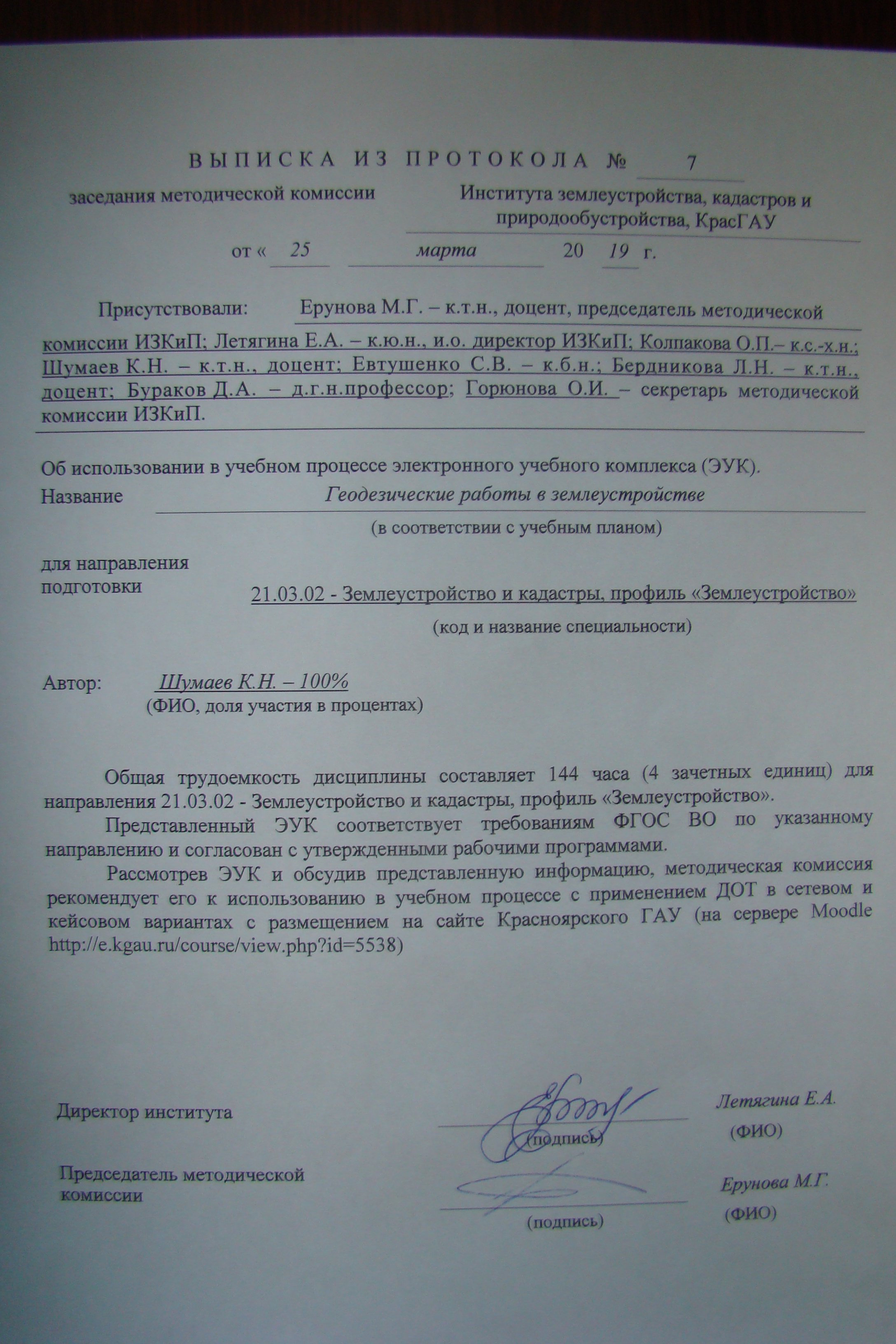 21.03.02 Землеустройство и кадастры Профиль: Землеустройство, Управление земельными ресурсами